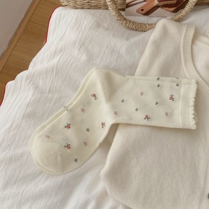 远润家韩国袜子女网红格子蝴蝶结中筒袜无骨芭蕾风碎花堆堆袜女灰
