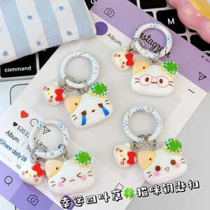四叶草幸运小猫挂件钥匙扣可爱卡通表情猫咪挂件学生包包挂饰礼物