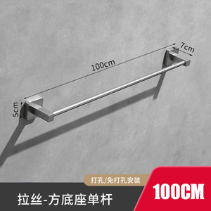 拉丝304不锈钢拉丝毛巾架单杆免打孔浴室卫生间毛巾杆加厚式挂架
