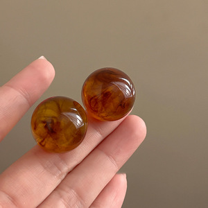 复古港风琥珀色圆球耳钉女美拉德个性独特设计感耳环夸张耳饰秋冬