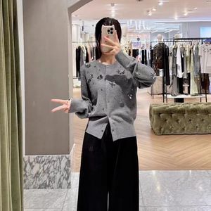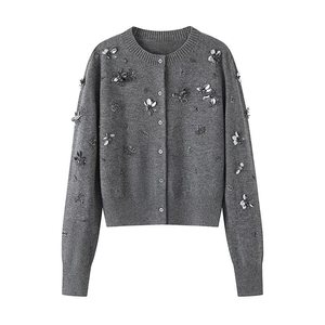 现货2025秋季新款气质优雅甜美风圆领亮片刺绣针织开衫MBD3CAR021