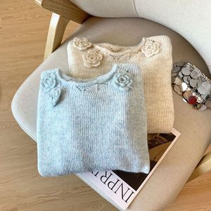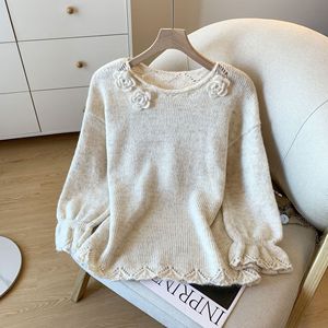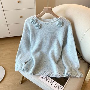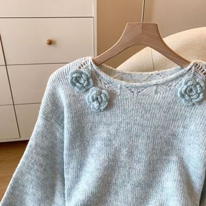 广州十三行高货爆款~立体花朵针织衫毛衣女秋装新款喇叭袖上衣ins