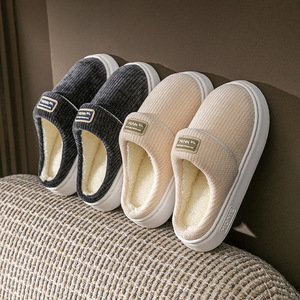 棉拖鞋女冬季家用厚底防滑加绒保暖拖鞋情侣款简约毛绒静音棉拖男