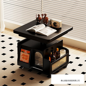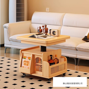 实木升降茶几移动推车茶桌折叠餐桌小户型茶台多功能客厅沙发边柜