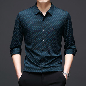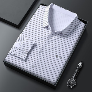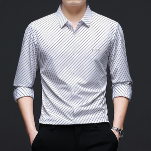 新款男士长袖衬衫轻奢高级感中年商务休闲无痕弹力印花衬衣男装