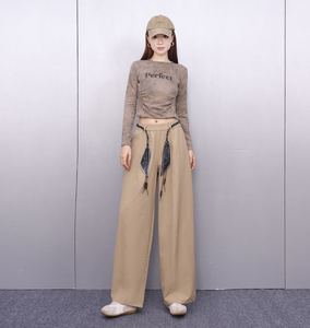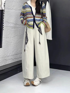 钛金棉秋冬加厚款韩版时尚百搭松紧腰阔腿休闲裤女九分裤子配丝巾