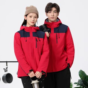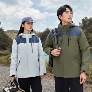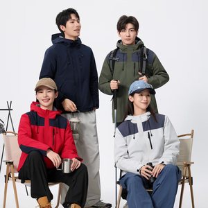 加绒男女同款冲锋衣防水防风工作服户外徒步登山一体绒外套定-制