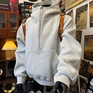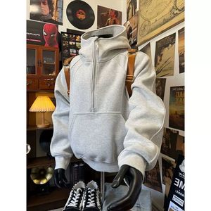 美式复古半拉链卫衣男女2025秋季新款解构拼接设计感帽衫重磅外套