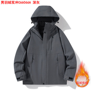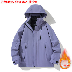 羽绒三合一冲锋衣男女款秋冬季户外防风防水保暖情侣外套C66066A