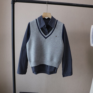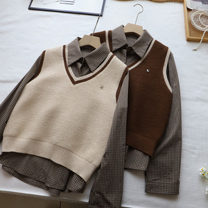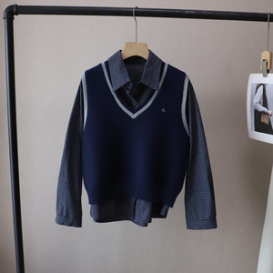 [比正]2025秋季新款韩版时尚好看格子衬衫外搭针织马甲背心女5113