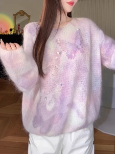法式时尚设计感紫色长袖针织衫女2025春秋季新款小众显瘦毛衣上衣
