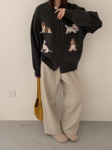 重工卡通小狗贴布刺绣针织开衫女2025秋冬新款韩系休闲针织外套厚