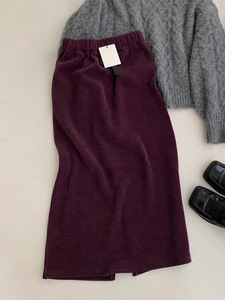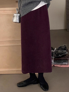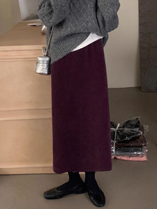 巨好搭!松紧高腰灯芯绒半身裙女秋季新款chic开叉包臀气质长裙子