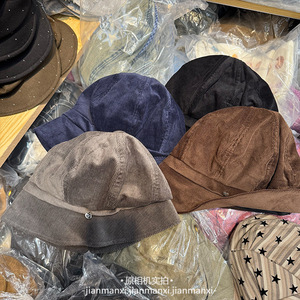 前长后短灯芯绒渔夫帽子女秋冬新款韩版韩国显脸小卷边素颜遮阳帽