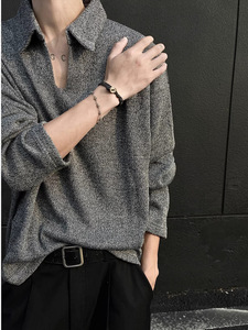 老钱风POLO衫卫衣男款2025春秋新款美式潮牌痞帅宽松麦穗V领外套