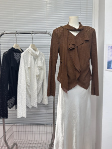 入秋松弛系设计感飘带V领T恤女2025秋季新款长袖上衣