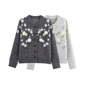 ZA外贸批发 欧美风法式 时尚 设计 女装 立体花朵针织开衫