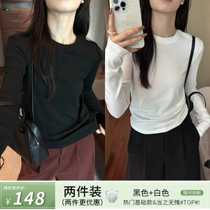 灰色长袖打底衫女内搭可外穿秋季新款设计感恤2025修身显瘦上衣