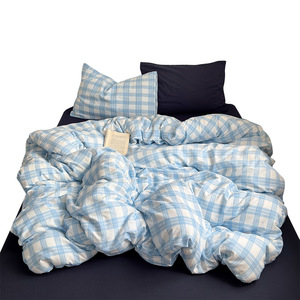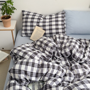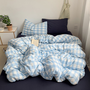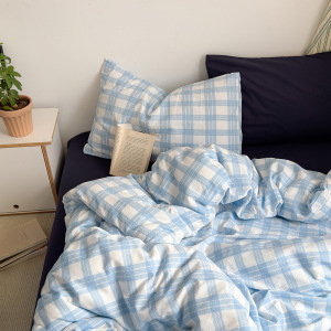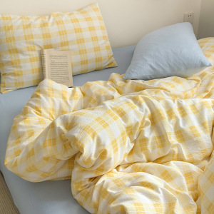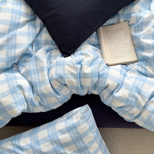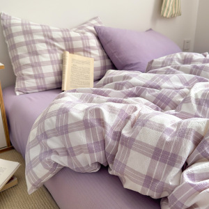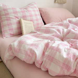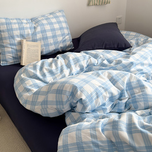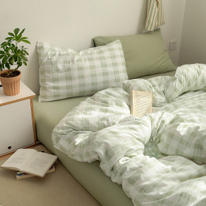 A类云感纯棉双层纱床上四件套格子格纹皱皱纱被套床品床单三件套2