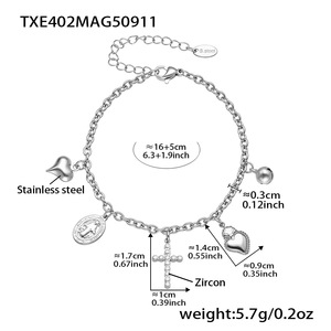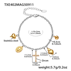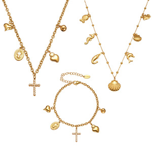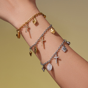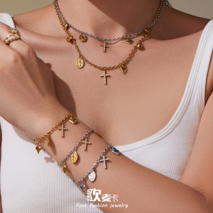 欧麦卡跨境新款不锈钢5A锆石十字架爱心多配件DIY手链项链套装女