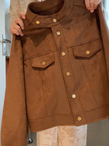 短款麂皮绒外套女春秋新款2025爆款洋气流行小个子高级感夹克上衣