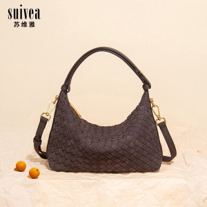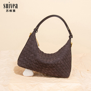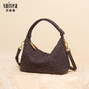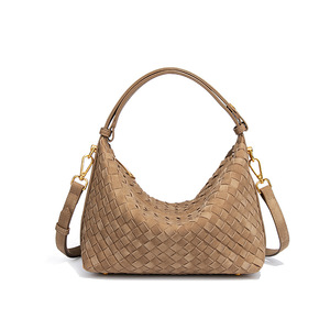 2025秋冬新款法式手工编织手提饺子包女复古磨砂百搭大容量斜挎包