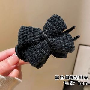 2#黑白格子毛绒蝴蝶结抓夹