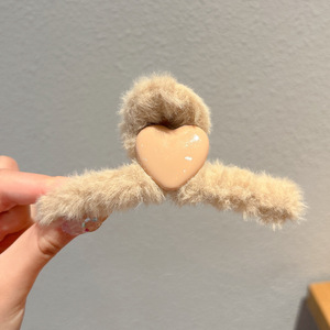 5#浅咖色毛绒爱心抓夹13CM
