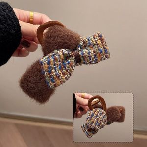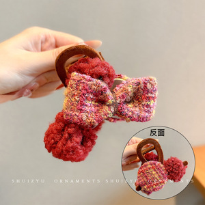 1#卡奇格子毛绒蝴蝶结抓夹