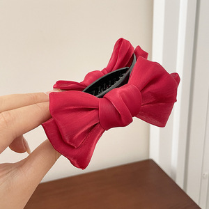 气质蝴蝶结抓夹女高级感2025新款毛绒发夹大号发量多鲨鱼夹子头饰