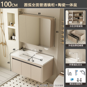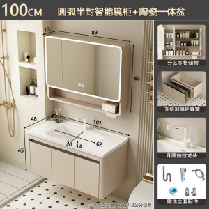 奶油风/101CM盆柜-【智能全封圆弧镜柜】