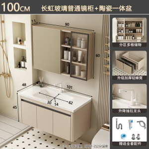 奶油风/101CM盆柜-【智能长虹玻璃镜柜】