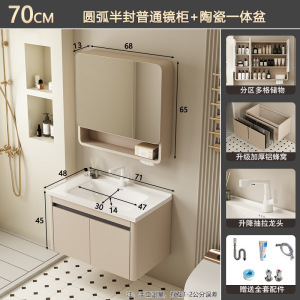 奶油风/71CM盆柜-【智能全封圆弧镜柜】