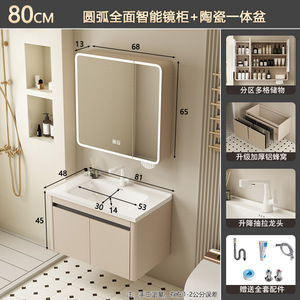 奶油风/81CM盆柜-【智能全封圆弧镜柜】