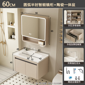 奶油风/61CM盆柜-【智能全封圆弧镜柜】