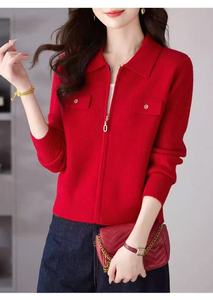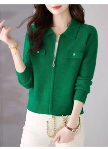 2025新款跨境女针织开衫秋冬拉链外套毛衣长袖外搭厚显瘦百搭气质