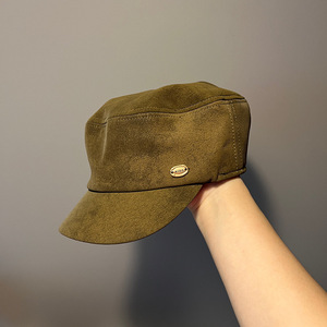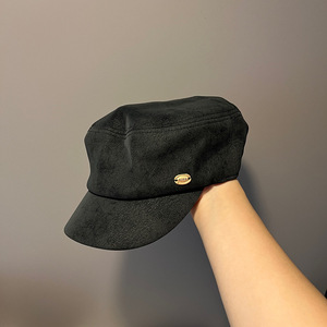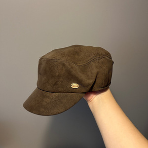新款日系复古麂皮绒磨砂皮质感平顶帽女秋冬百搭复古报童帽马术帽