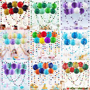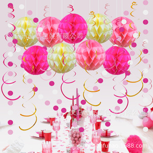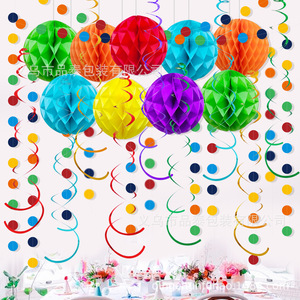 新款跨境彩色节日波西米亚婚礼派对拉花蜂窝螺旋吊饰装饰布置用品