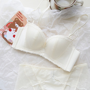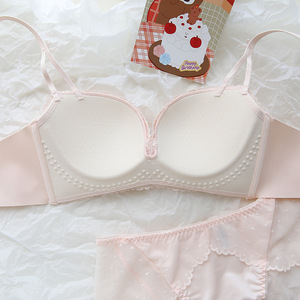 巴黎之约青年锦纶缎面蕾丝少女内衣无痕小胸聚拢无钢圈甜美文胸