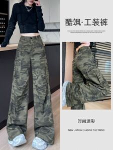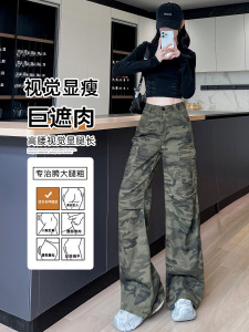 超火迷彩色工装阔腿牛仔裤女秋季2025新款高腰宽松登山休闲喇叭裤