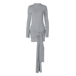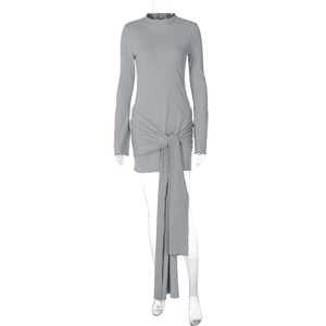 2025秋季新品欧美风外贸女装半高领纯色时尚气质绑带紧身连衣裙
