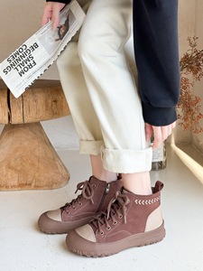 龍林2025秋季新款高帮马丁靴大头丑萌休闲板鞋软底轻便运动休闲鞋
