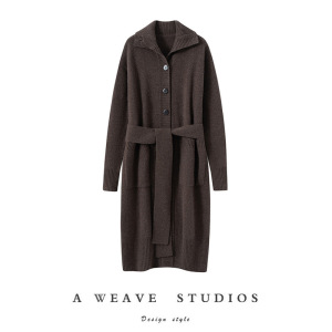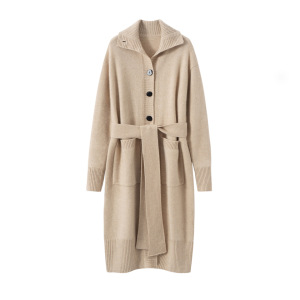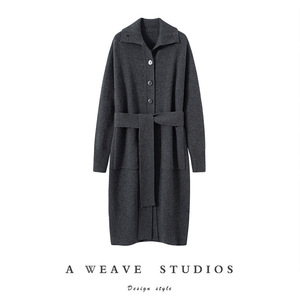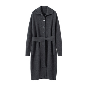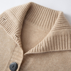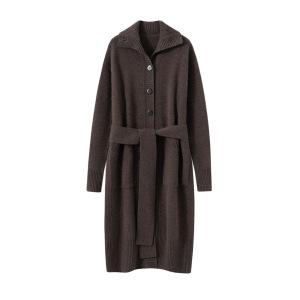 100纯山羊绒衫女式翻领中长款外套秋冬新款气质通勤双兜大衣开衫