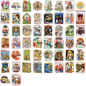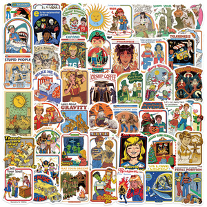 50张卡通幽默复古美式装饰贴纸DIY手账水杯手机壳批发跨境PVC贴纸