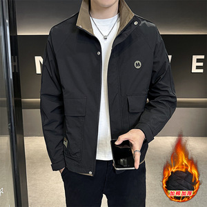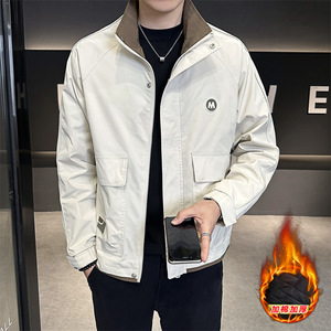 秋冬字母立领加棉夹克男2025秋季男士潮牌休闲百搭长袖外套棉服冬
