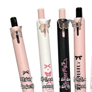 黑粉透明蝴蝶按动中性笔ins风高颜值少女心学生黑色速干刷题笔0.5