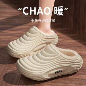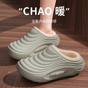 eva防水棉拖鞋秋冬季男女情侣居家用外穿防滑加绒保暖踩屎感拖鞋