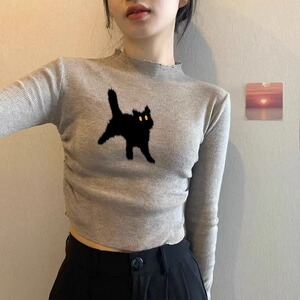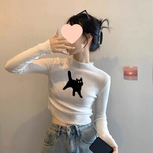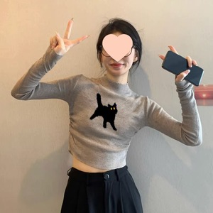 半高领针织打底衫女装春秋2025新款短款上衣秋冬中领内搭长袖恤