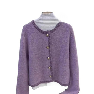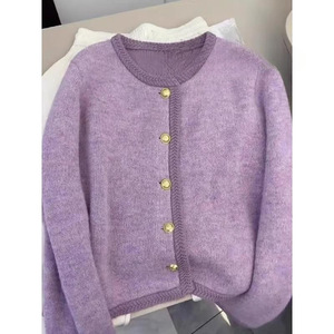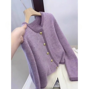 跨境大码2024冬温柔奶呼呼洋气紫色上衣女小香风时尚百搭休闲开衫