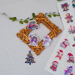 83pcs跨境热卖款全息圣诞节装饰小贴画手机壳笔记本水杯装饰贴纸